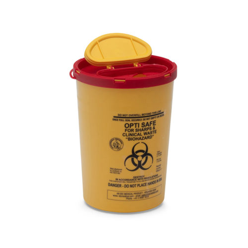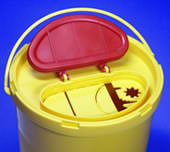 Sharps Container, with a “special” lid opening for used cannulas, scalpels, butterfly-systems, tubes.